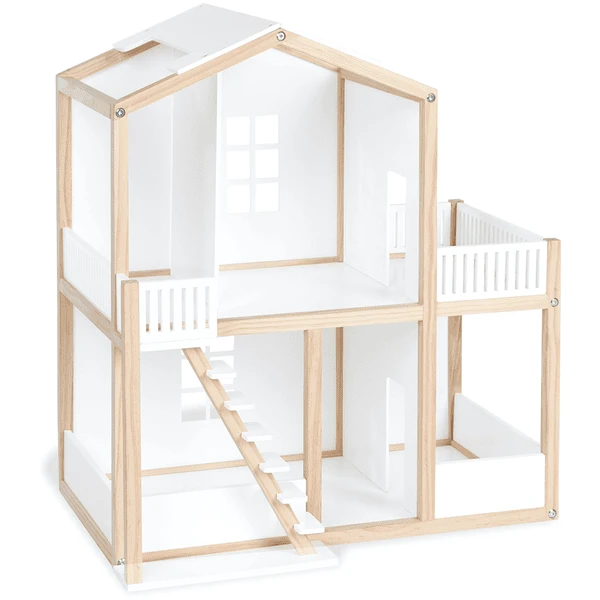 Durch die großen Öffnungen und Fenster lässt sich das Puppenhaus aus Holz